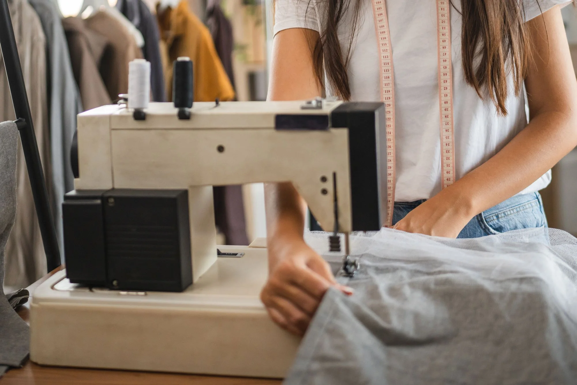 I can work with all types of fabrics such as wovens (satins, suit pants, skirts, jeans, dress shirts, etc.) and stretch fabrics (swim, tshirts, stretch skirts and shorts, etc.)